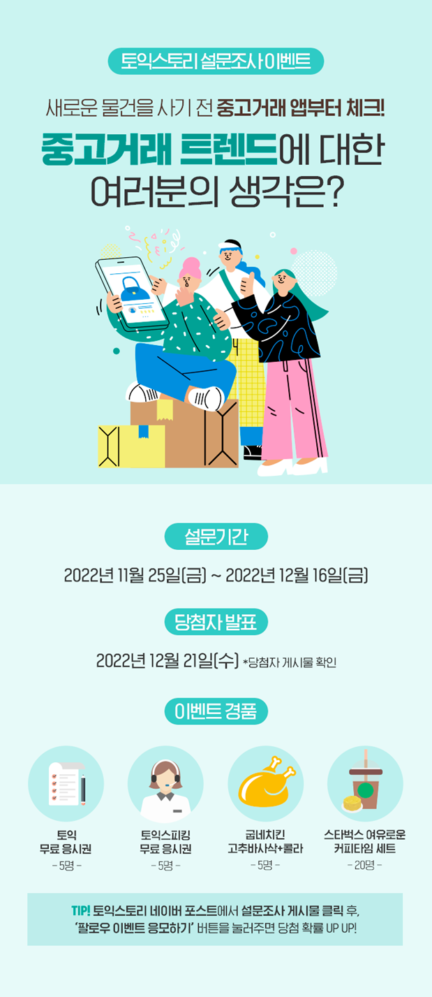 <토익스토리> 네이버 포스트 설문조사 게시물 클릭 후, ‘팔로우 이벤트 응모하기’ 버튼을 눌러주세요. 당첨 확률이 올라갑니다.