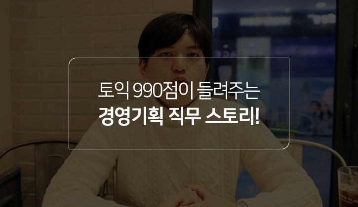 경영기획 직무 취준생 주목! 경영기획 직무를 꿈꾸지만, 어떤 역량이 필요한지 잘 모르시는 분들을 위해 <토익스토리>가 출동했습니다. 서서히 공기가 차가워지는 겨울의 초입에서 10개월 차 대기업 신입사원 조영장 씨를 만났는데요. 무려 토익 만점! 과거 한 취업 유튜버와 화상 인터뷰를 통해 '토익 꿀 TIP'의 이야기를 전해줄 정도로 취업과 토익을 준비하시는 분들의 마음도 십분 이해하고 있었죠. 영장 씨의 TOEIC STORY, 지금 바로 전해드리겠습니다. :)