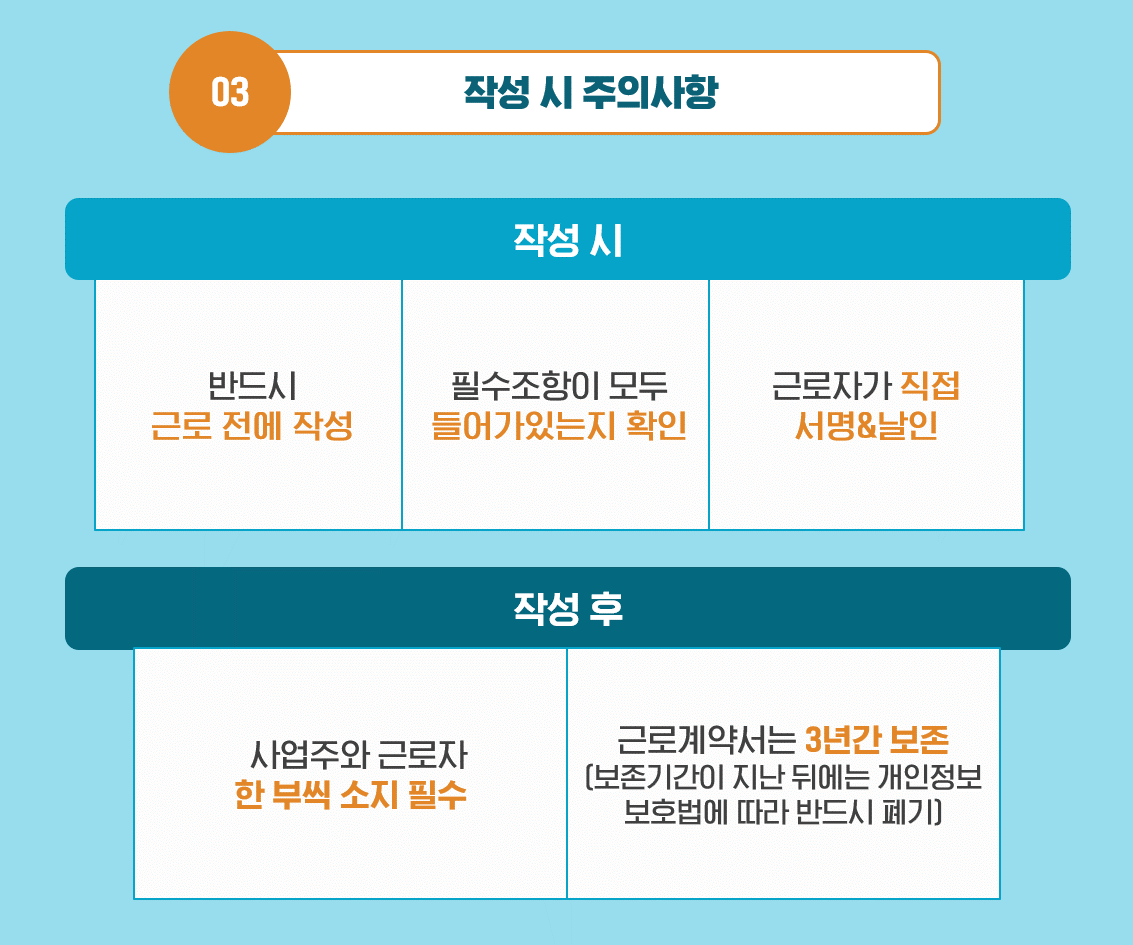 Q3. 근로계약서 작성 시 주의해야 할 점이 있나요?