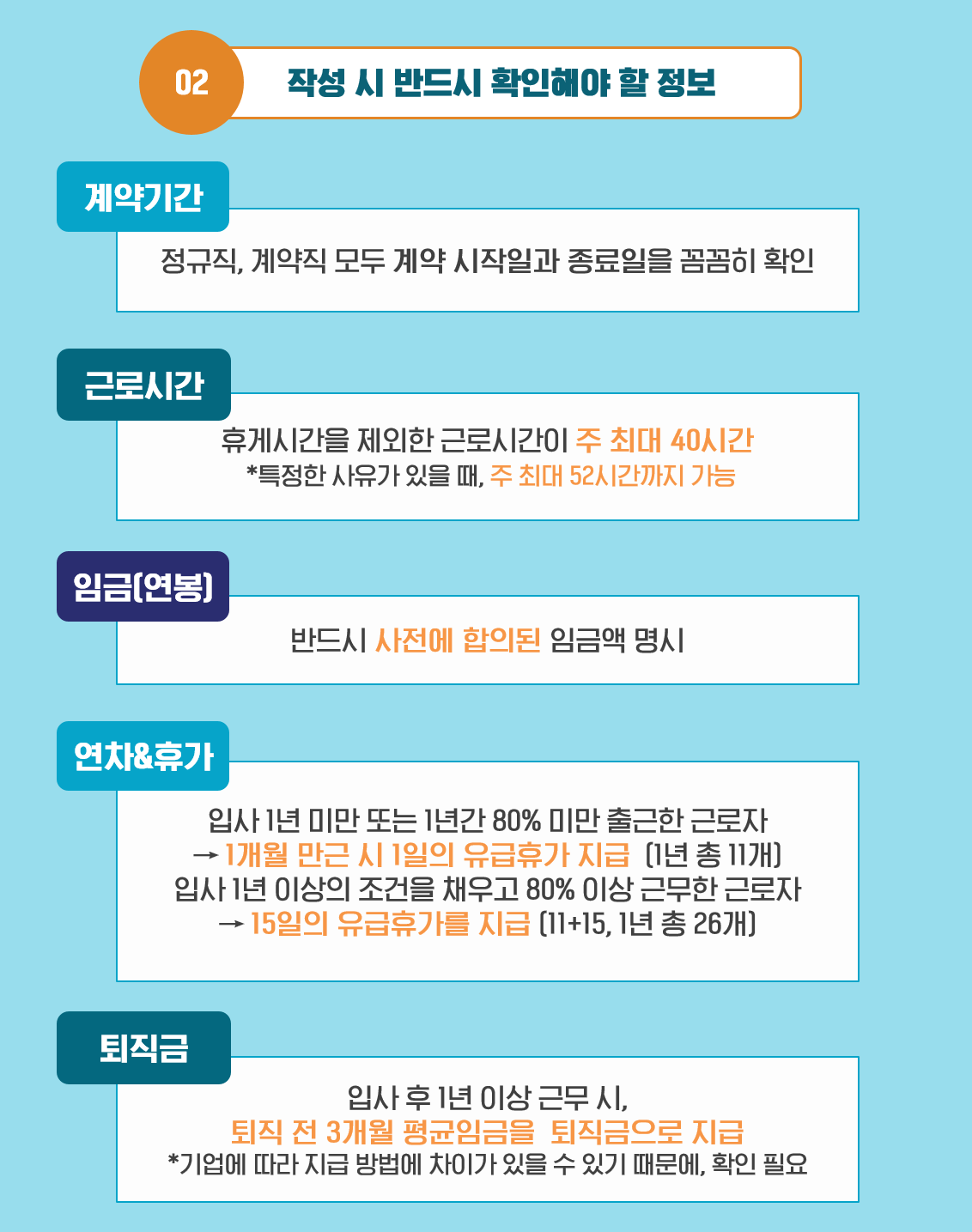 Q2. 근로계약서 작성 시 반드시 확인해야 할 정보가 있나요?