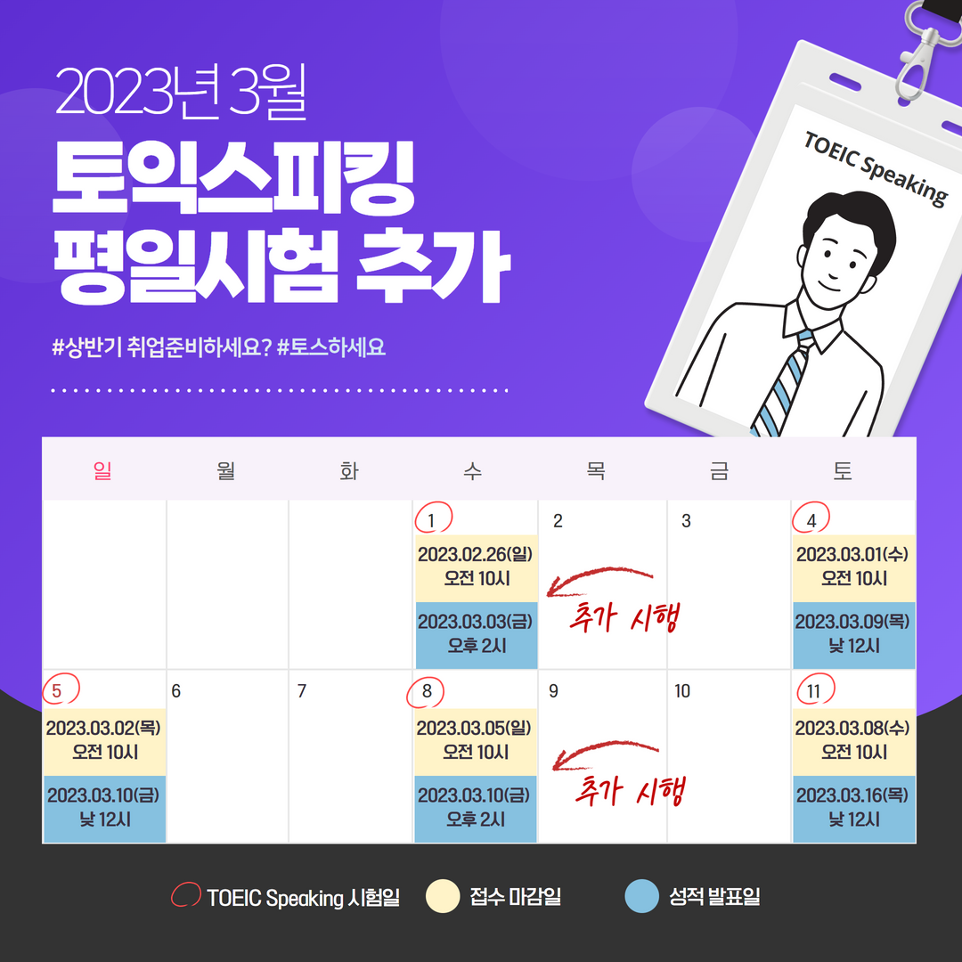 토익스피킹 2023년 3월 평일시험 추가 시행 안내