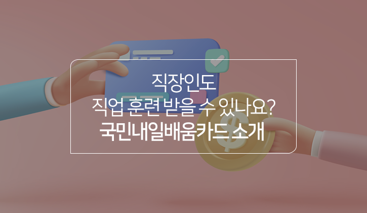 “어떻게 하면 일을 더 잘할 수 있을까?“ 직장인 분들이라면 한 번쯤은 해보셨을 고민일 텐데요. 여기, 카드 한 장으로 원하는 직업훈련을 받을 수 있는 제도가 있습니다. 바로 ‘국민내일배움카드’인데요! 국민내일배움카드란 급격한 기술발전에 적응하고, 노동시장 변화에 대응하는 사회 안전망 차원에서 국민 스스로 직업능력개발훈련을 실시할 수 있도록 훈련비를 지원하는 정부 지원 제도입니다. 오늘 직문즉답에서는 국민내일배움카드 제도 안내, 지원 금액 및 내용, 신청 방법 및 훈련장려금에 대해 소개해 드리겠습니다. 그럼 함께 살펴볼까요?