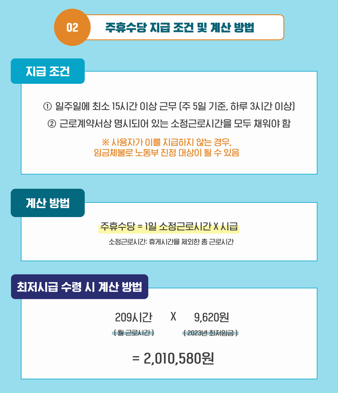 Q2. 주휴수당 지급 조건 및 계산 방법은 어떻게 되나요?