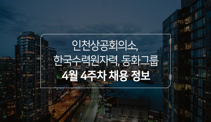 <토익스토리>가 인천상공회의소, 한국수력원자력, 동화그룹 채용 정보를 안내해 드립니다. 모집 마감일과 토익, 토익스피킹 성적 기준을 확인해 보세요!