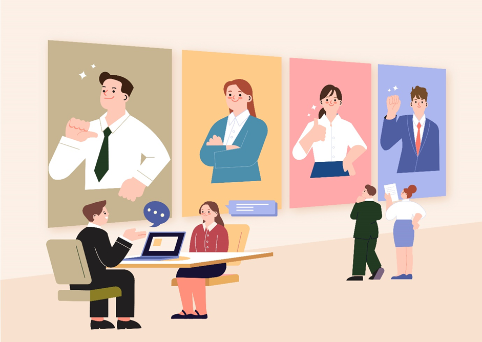 위의 서비스가 주로 구직자를 위한 것이라면, 기업을 위한 채용지원 서비스도 있는데요. 그중 채용대행 서비스는 기업의 직원 채용 비용 절감을 위해 모집, 전형, 선발 등의 절차를 고용센터에서 대행해 주는 서비스입니다. 워크넷에서 이용 가능한 e-채용마당은 대기업, 공기업, 우량중소기업(상용근로자 30인 이상)을 중심으로 채용을 지원해 주기도 하죠.