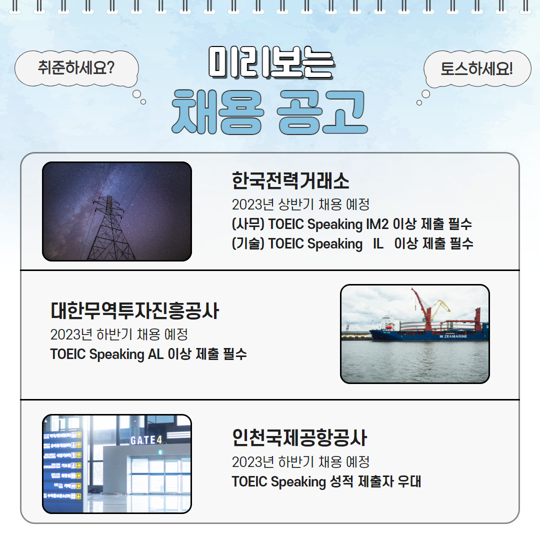 토익스피킹 성적 활용! 채용 예정 공공기관+공기업은?