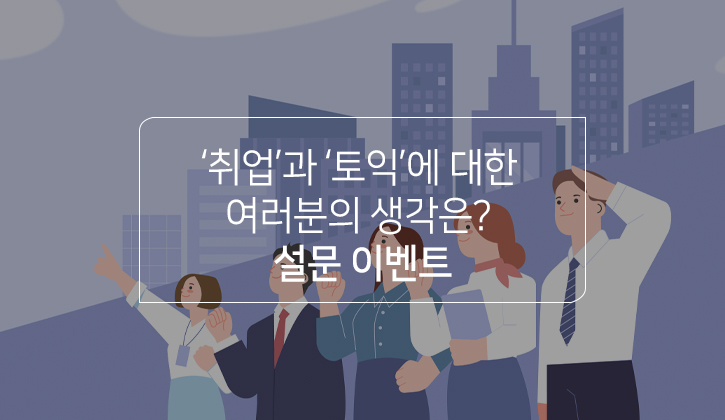 | [당첨자 발표]'취업’과 ‘토익’에 대한 여러분의 생각은? (0) | 2023.06.21 |