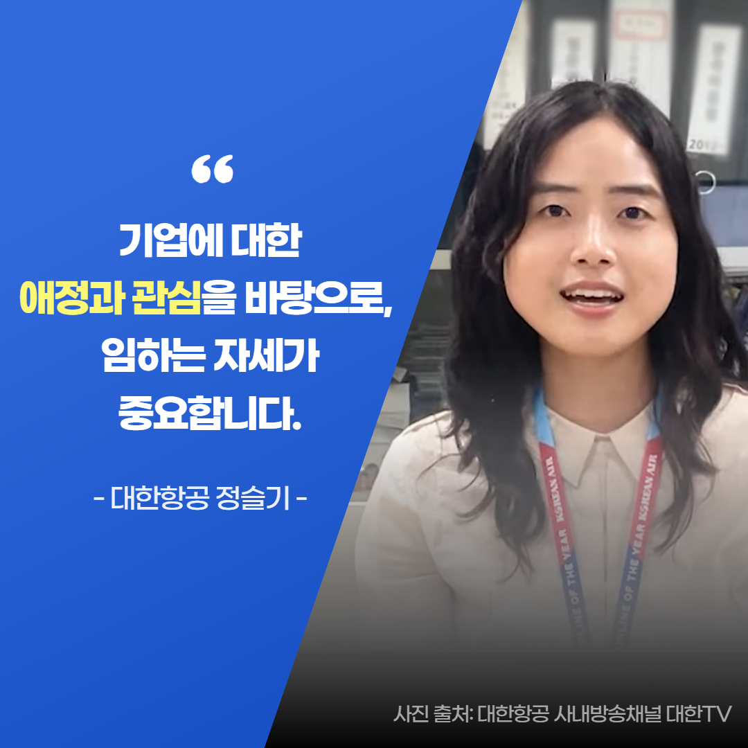 인터뷰를 하다 보니 10여년 전 대한항공 채용 홈페이지에 뜬 채용공고를 확인하고, 대한항공 인재상을 살펴보며 나는 과연 대한항공에 맞는 인재인지 고민하며 자기소개서를 써 내려가던 저의 모습이 떠오릅니다.