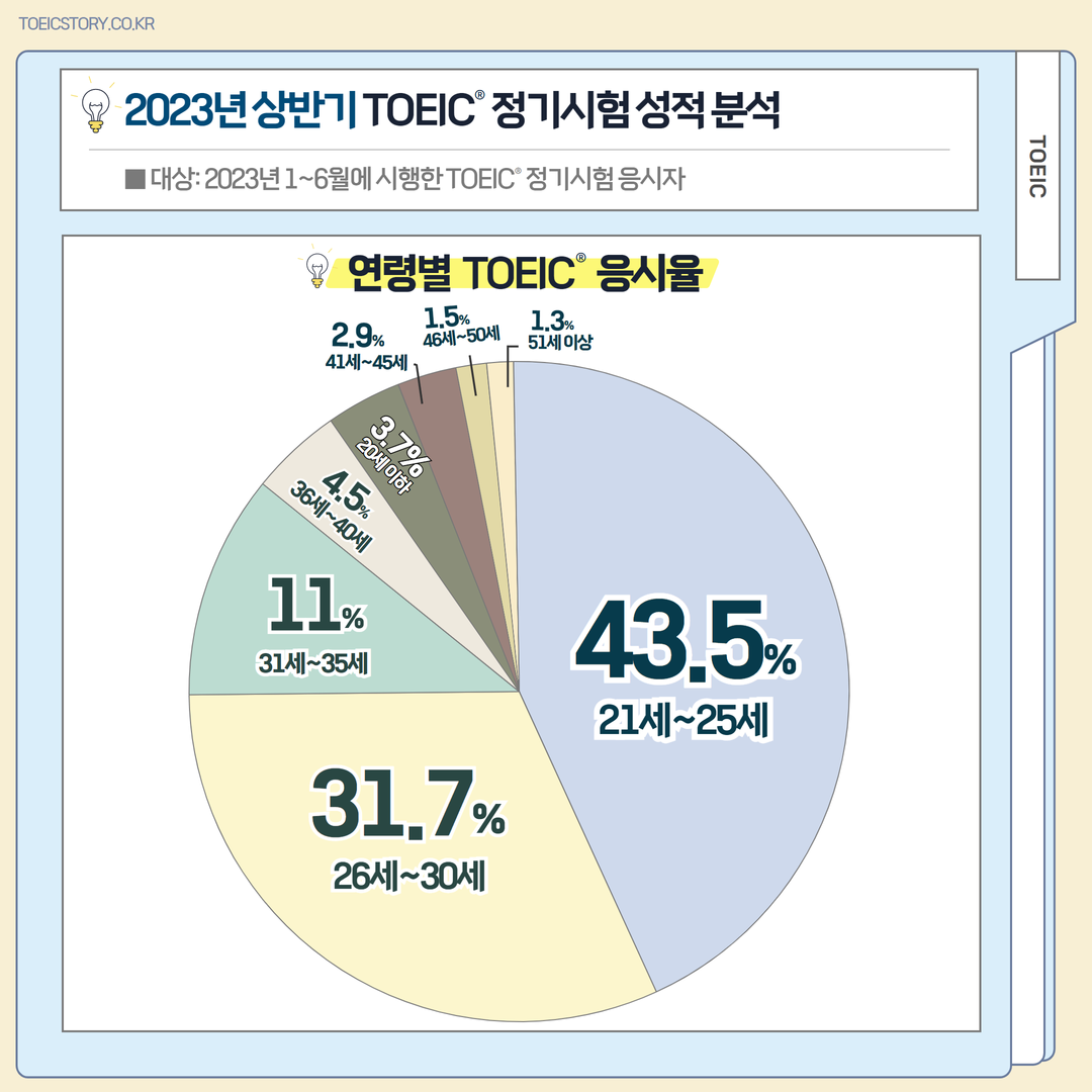 2023년 상반기 토익 응시 연령 비율 1위 21세~25세