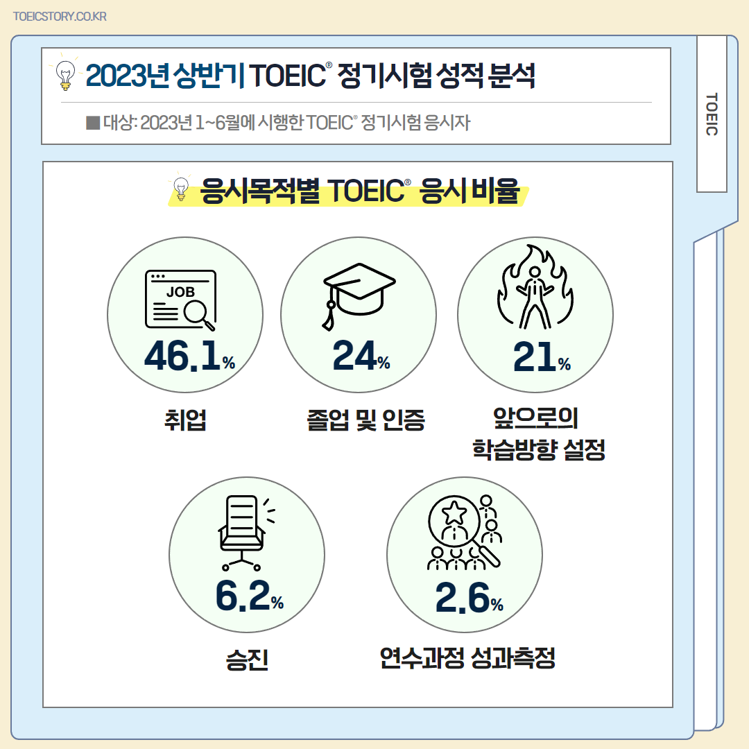 2023년 상반기 토익 목적별 응시율 1위 역시 '취업'