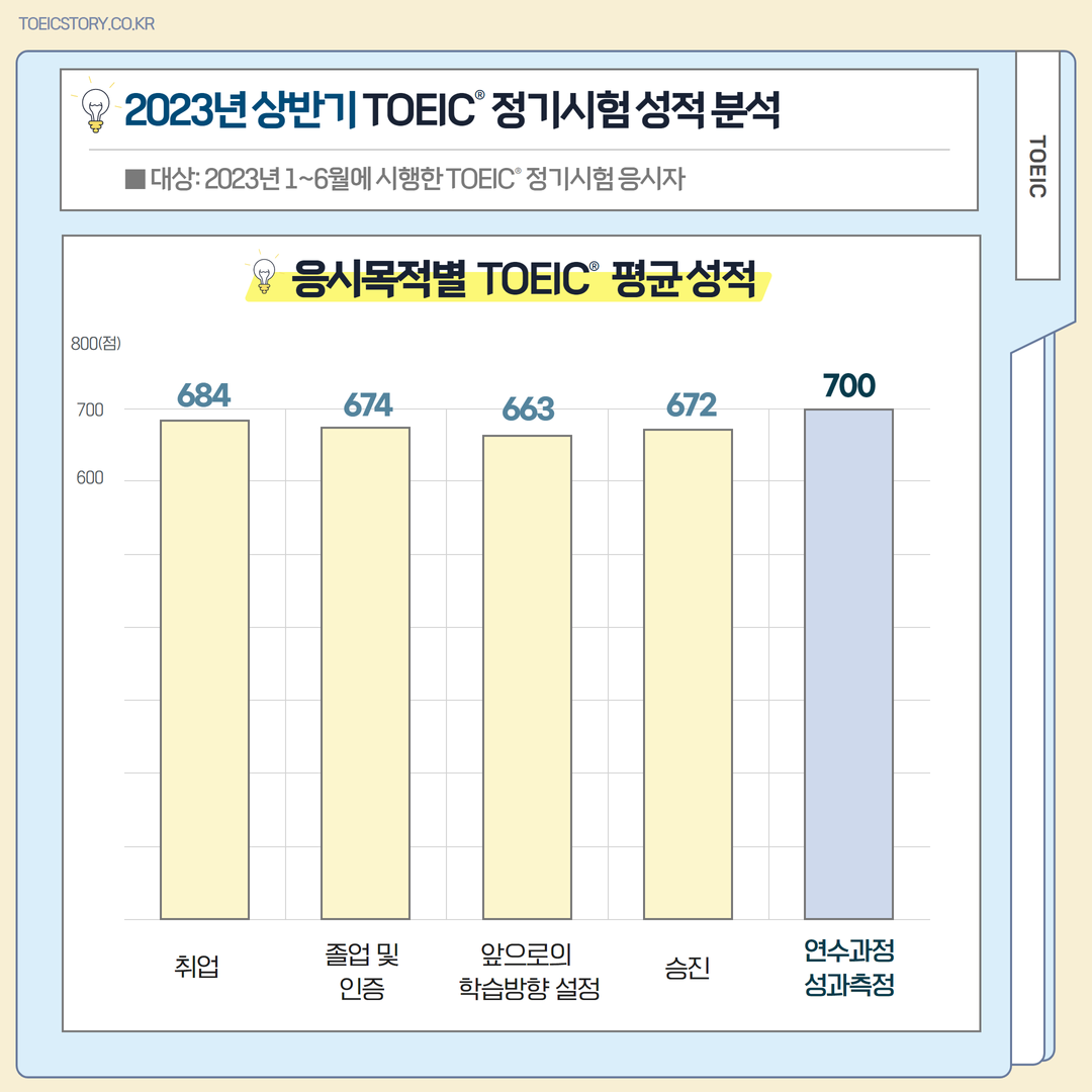 2023년 상반기 토익 정기시험 평균 성적은 681점으로 확인됐습니다.