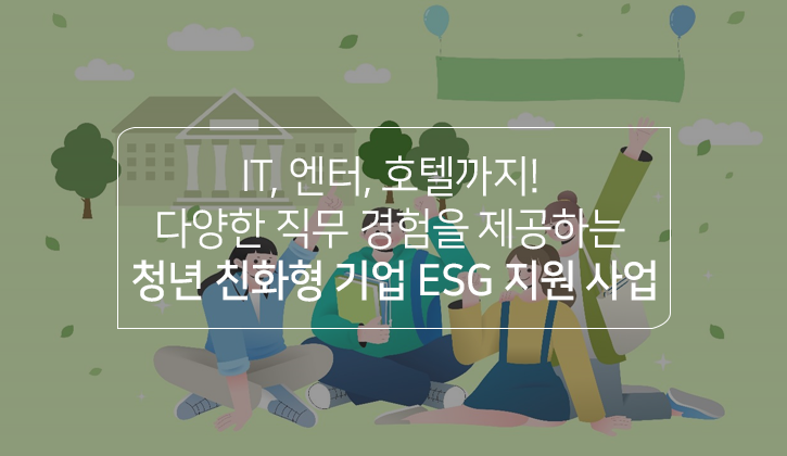 청년친화형 기업 ESG 지원 사업이란 취업에 어려움을 겪는 청년에게 기업의 직무 경험을 제공하고, 정부는 기업이 직무 경험 프로그램을 운영할 수 있도록 지원하는 정책입니다. 즉, ESG 경영의 Social(사회) 분야와 연계하여 청년에게는 취업역량 향상의 기회를, 기업에는 사회적 가치 창출을 지원하고 있죠.