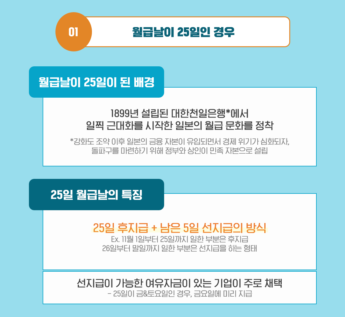Q1. 직장인의 월급날이 25일인 이유가 있나요?