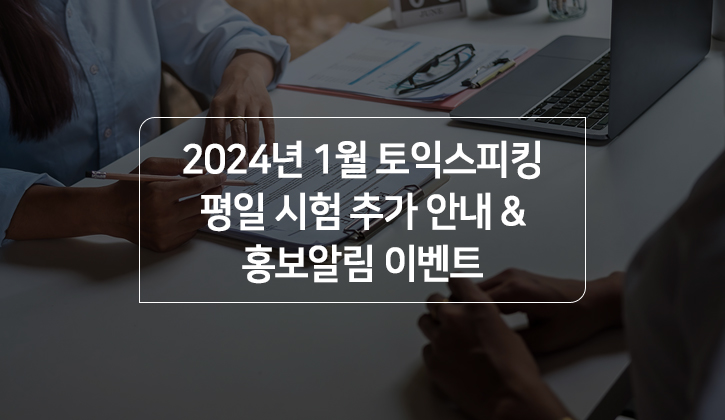 이 순간에도 열심히 노력하고 계실 여러분을 위해! 1/17(수), 1/31(수) 토익스피킹 평일 시험을 추가 시행합니다.