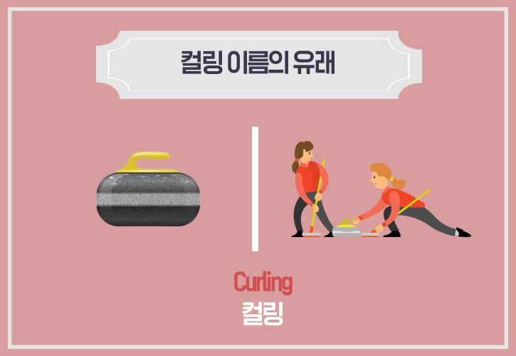 여기서 'Curl'은’ ‘동그랗게 말린, 곱슬곱슬한’ 등의 의미를 갖고 있는데요. 이에 따라, 'Curling'은 돌이 얼음 위를 휘어지며(curl) 나가는 모습을 본떠서 만들어진 단어입니다. 컬링은 팀워크와 정교한 던지기 기술들이 요구되며 전략을 통해 승부가 쉽게 뒤집힐 수 있기 때문에 관중들에게 더 매력적인 스포츠로 다가오는데요. 특히, 컬링의 ‘Sweeping(쓸기)’ 기술은 남녀노소 나이 불문하고 모두가 따라 하는 재밌는 기술이기도 하죠. :)