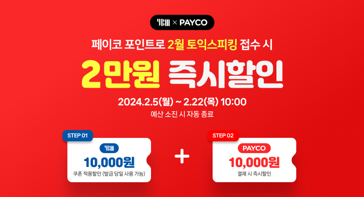 PAYCO(페이코) 포인트로 2월 TOEIC Speaking(토익스피킹) 접수 시, 토익스피킹 2만원 할인!