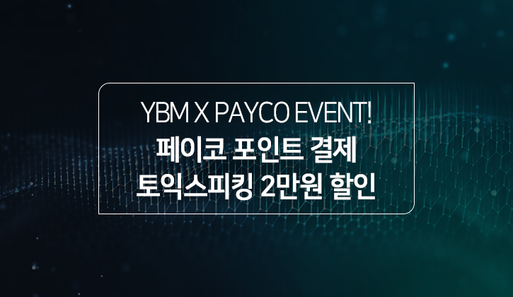 지금까지 YBM과 페이코가 준비한 토익스피킹 2만원 할인 이벤트 소식을 전해드렸습니다. 토익스피킹 수험자분들을 위한 통 큰 할인 이벤트인 만큼, 꼼꼼히 확인하시고 혜택 누리시기 바랍니다.
