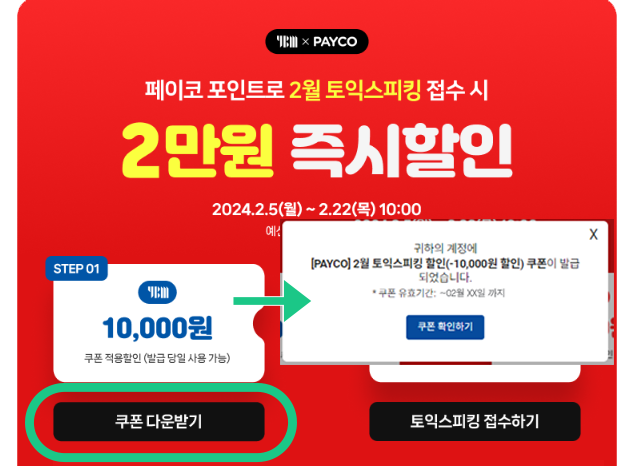 PAYCO(페이코) 포인트로 2월 TOEIC Speaking(토익스피킹) 접수 시, 토익스피킹 2만원 할인!