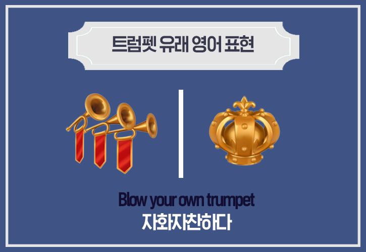 과거에는 트럼펫과 같은 악기를 사용하여 타인의 주목을 끌며 자신의 위상을 높이곤 했는데요. 이런 행동은 주로 자신의 능력을 강조하려는 목적에서 비롯되었기 때문에, ‘Blow your own trumpet’은 ‘자화자찬하다’라는 뜻을 갖게 되었습니다.