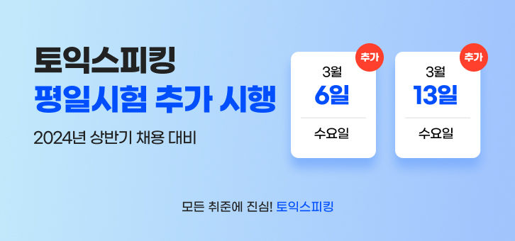 2024년 3월 13일(수) 토익스피킹 평일시험 추가 시행