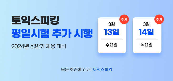 2024년 3월 14일(목) 토익스피킹 평일시험 추가 시행