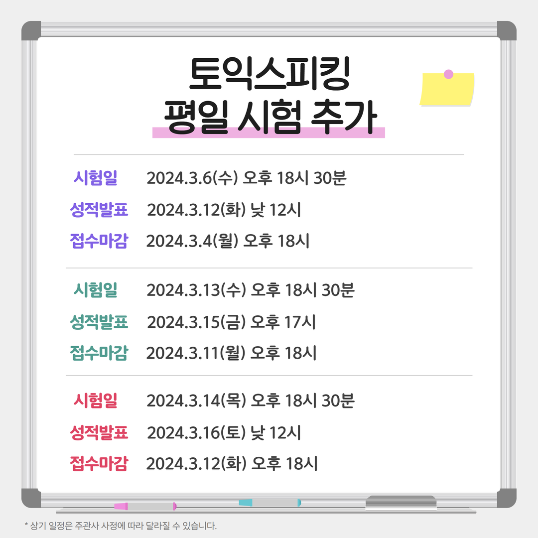 2024년 3월 6일(수) 토익스피킹 평일시험 추가 시행