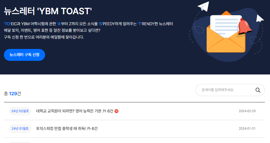YBM TOAST는 YBM 한국TOEIC위원회 뉴스레터의 이름입니다.