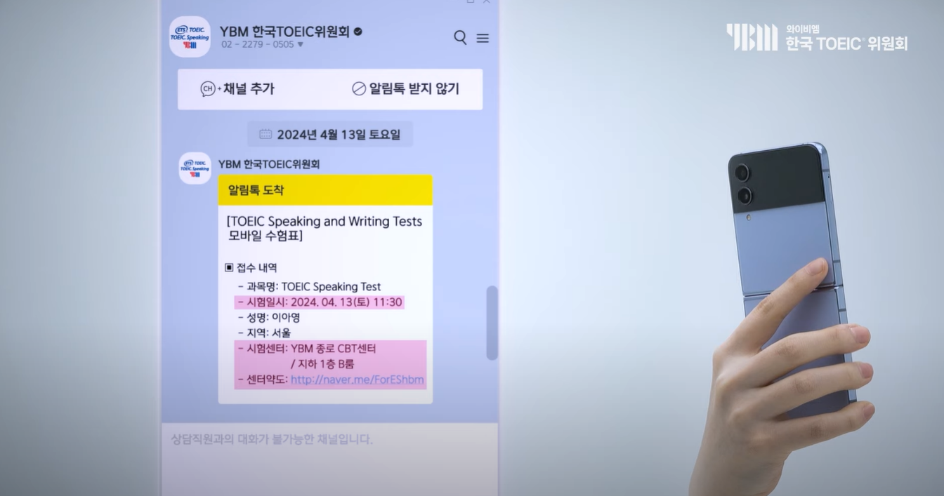 토익스피킹 시험 당일, 모바일 수험표 발송!
