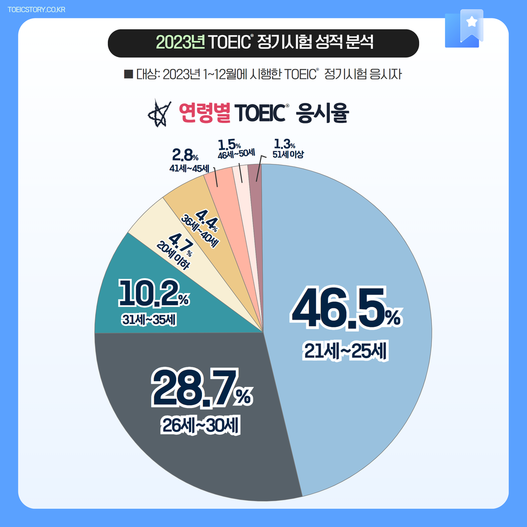 2023년 토익 응시 연령 비율 1위 21세~25세