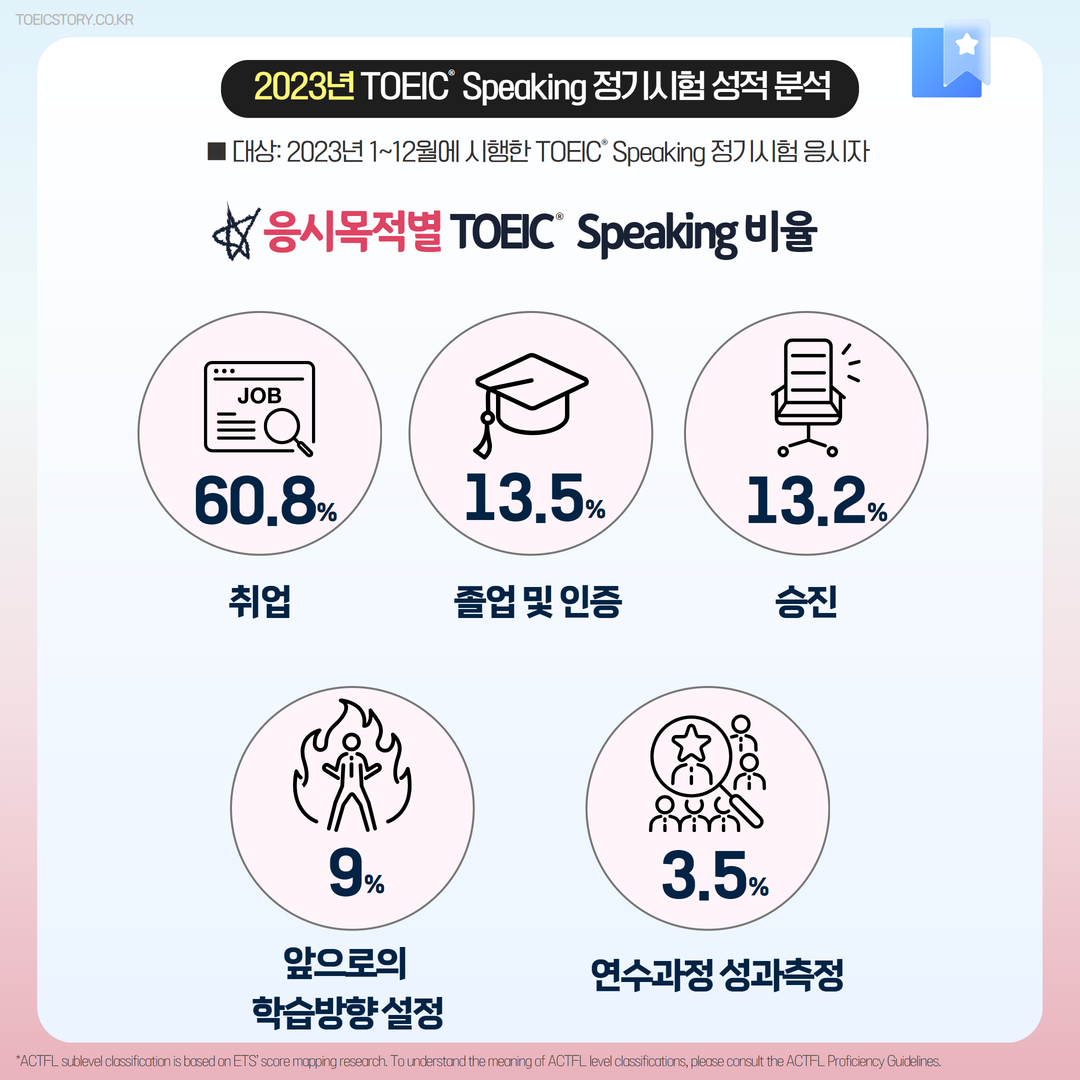 지금까지 2023년 토익스피킹 정기시험 성적분석 결과를 전해드렸습니다. 흥미롭게 보셨나요? 시험에 응시하신 분은 내 성적은 어느 정도인지 가늠하실 수 있는 척도로 활용하시고, 시험을 준비 중이신 분은 해당 콘텐츠를 통해 학습 의지를 불태워보세요! :D