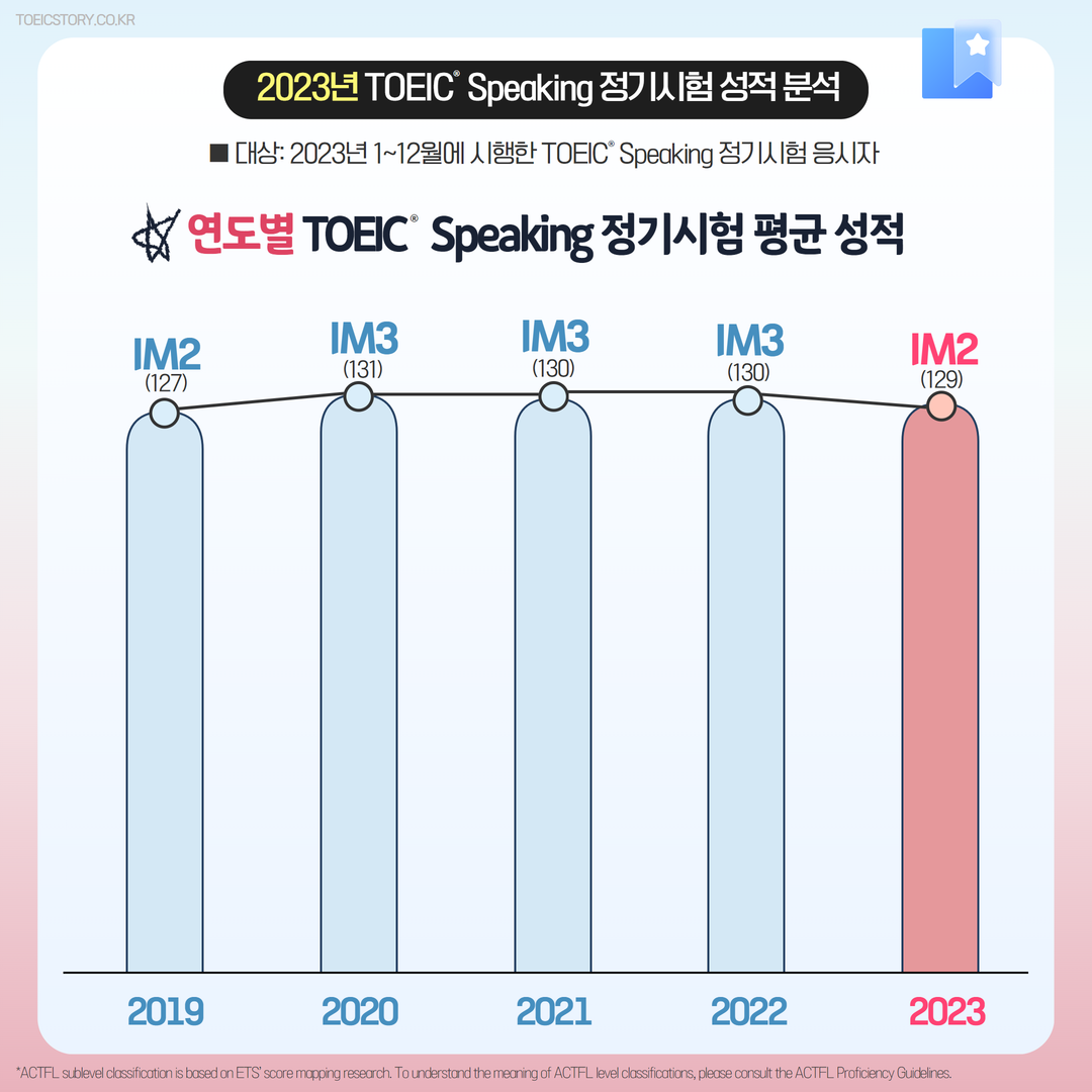 2023년 토익스피킹 정기시험 평균 성적인 'IM2'! 연도별 평균 성적과 함께 살펴볼까요?
