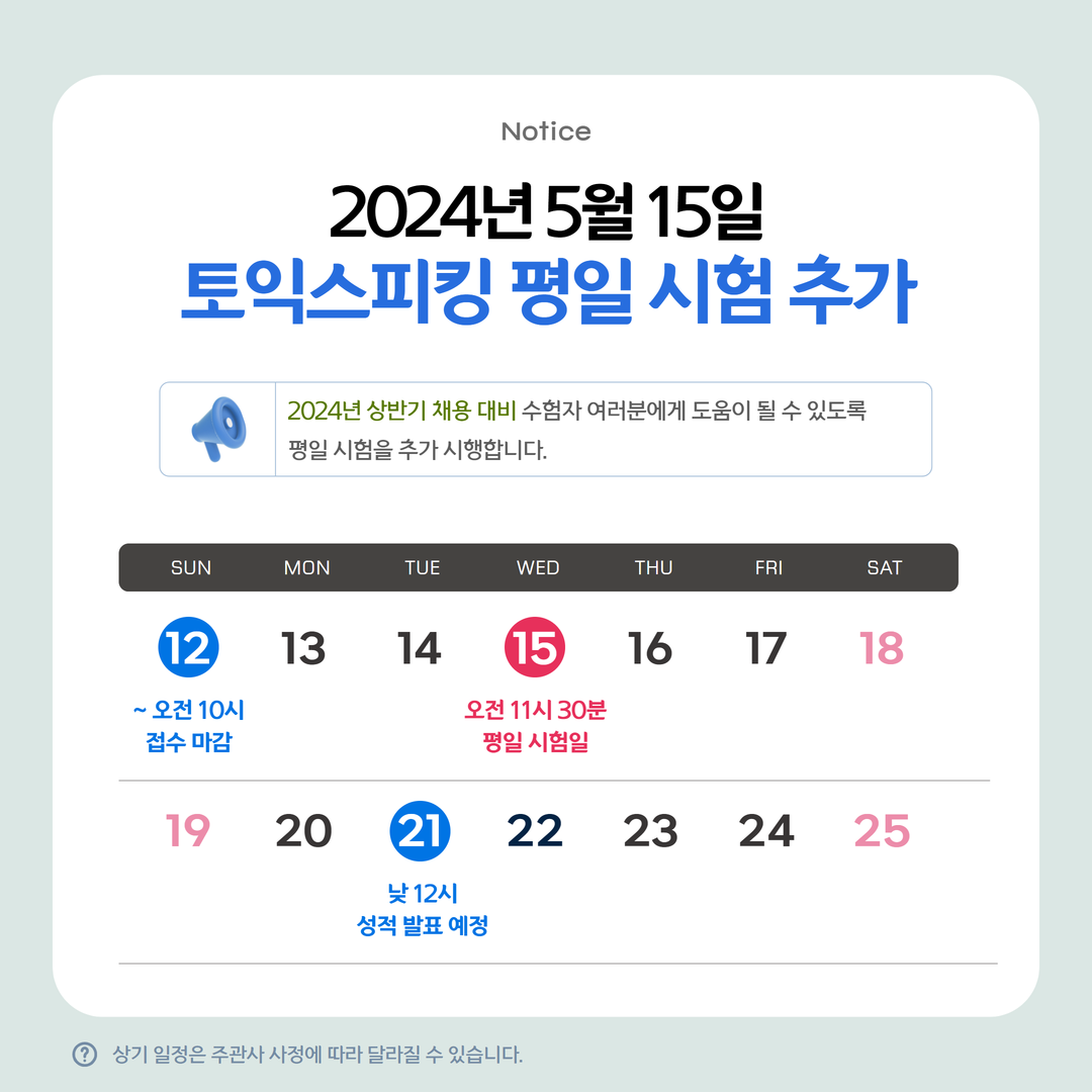 2024년 5월 15일(수) 토익스피킹 평일 시험 추가