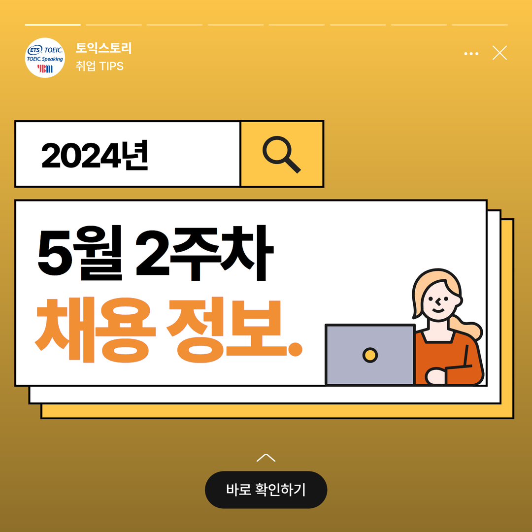 | 아이엠비씨 | 신입 | 아이엠비씨 직원 채용 공고 | 5.12(일) 23:59 | TOEIC 성적 제출 가능 or TOEIC Speaking 성적 제출 가능 |
