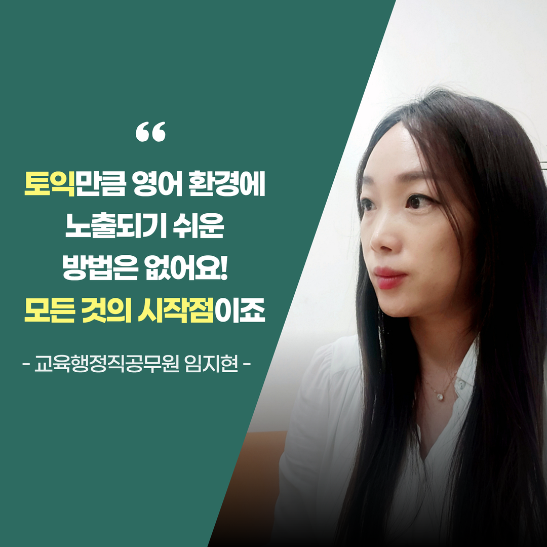 학창 시절, 학교 행정실에서는 어떤 업무가 진행되는지 한 번쯤 궁금했던 기억이 있으실 텐데요. 올바른 학교 운영을 위해 행정실에서는 교육행정직 공무원이 근무하고 있습니다. 오늘 <토익스토리>는 현재 경산중학교에서 근무 중이신 임지현 행정실장님을 만났습니다. 어느덧 22년 차 교육행정직공무원이고, 초등학생 자녀를 둔 어머니시기도 하죠. 근무, 육아까지 눈코 뜰 새 없이 바쁘실 텐데요. 임지현 실장님은 20대 중반부터 40대 중반이 된 지금까지 2년에 한 번씩 토익을 응시 중이시라고 합니다.