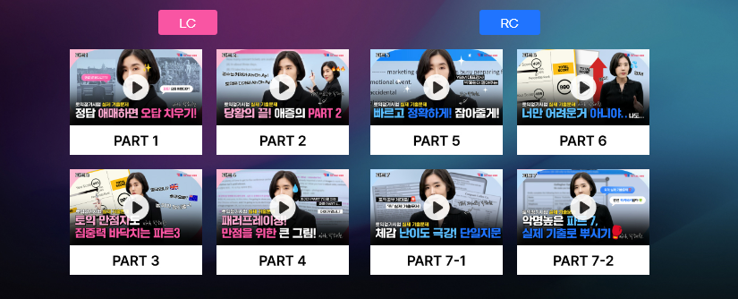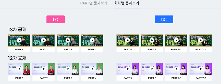 '토익 정기시험 실제 기출문제 14차' 페이지에 들어오시면 LC, RC 각각의 파트별로 해설 영상을 만나보실 수 있는데요. 원하는 파트만 골라서 학습하실 수 있습니다.