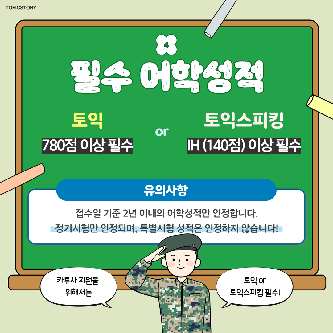 카투사 지원을 위해서는 토익 또는 토익스피킹 성적 제출이 필수입니다!