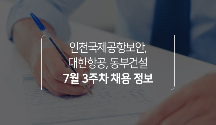 2024년 7월 3주차 채용 정보 - 인천국제공항보안, 대한항공, 동부건설