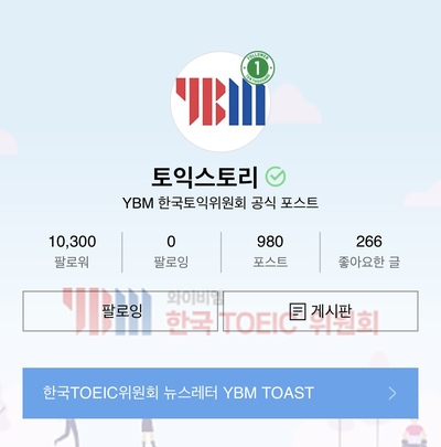 2. <토익스토리> 네이버 포스트 팔로우 완료 화면을 캡쳐해주세요. 😊