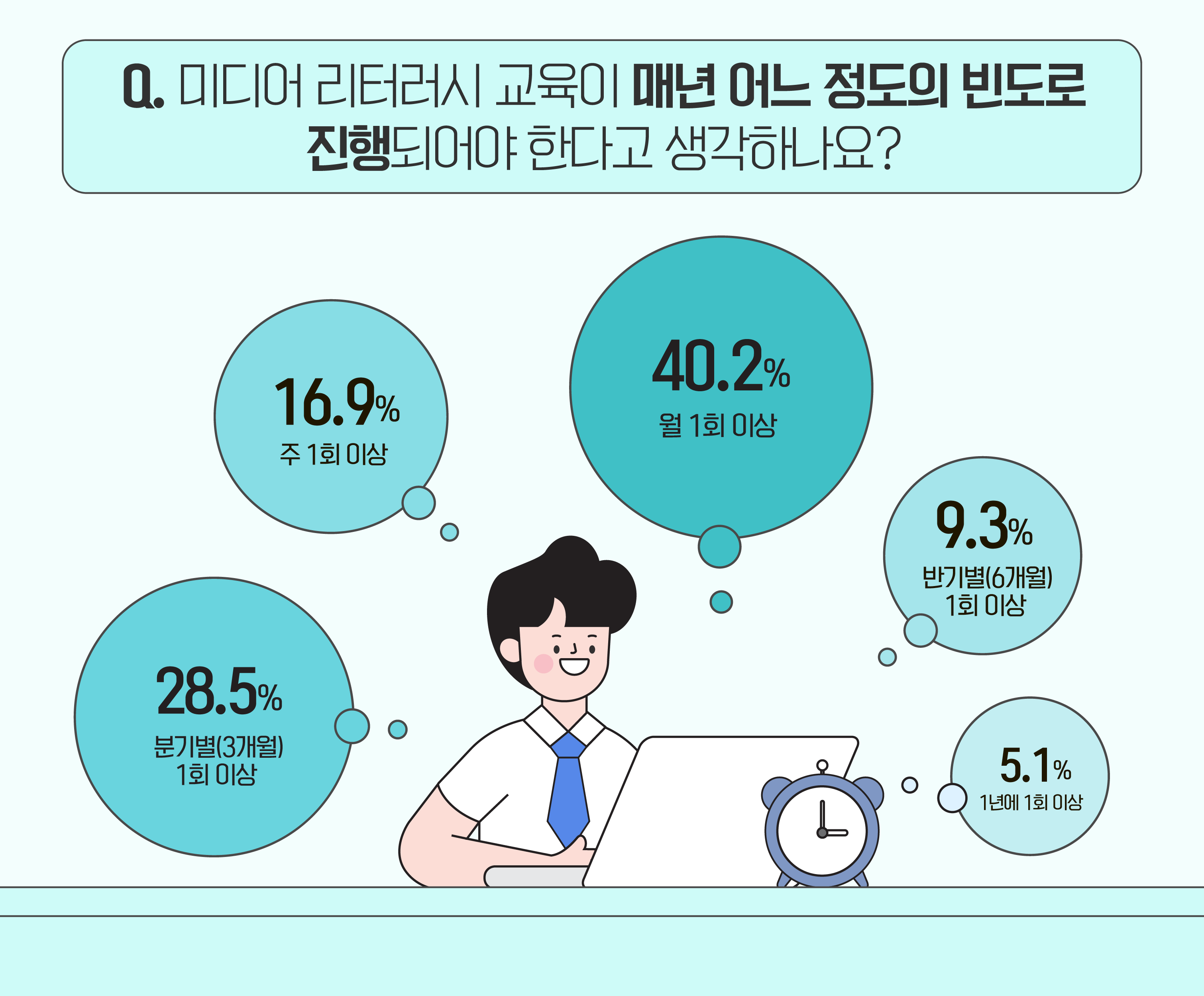 그렇다면, 설문 응답자들은 미디어 리터러시 교육이 매년 어느 정도의 빈도로 진행되어야 한다고 생각하고 있을까요?