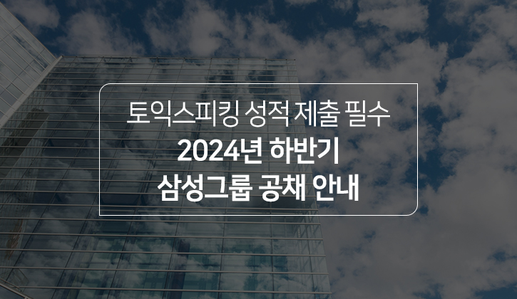 | 삼성그룹 | 신입 | 2024년 하반기 3급 신입사원 채용 공고 | 9.11(수) 17:00 | TOEIC Speaking 성적 제출 필수 (각 계열사, 직무에 따라 기준 상이) |