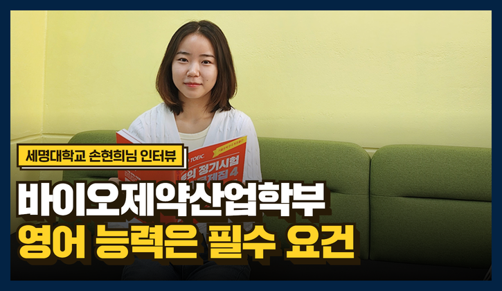 지키기 가장 어렵다는 나와의 약속! 그 약속을 달성하여 토익 응시권을 제공받고, 토익을 응시한 주인공을 모셨습니다. 바로 세명대학교 바이오제약산업학부 4학년 손현희 님인데요. 현재 졸업을 앞두고 대학원 진학을 위해 정진 중이라고 합니다. 바이오제약산업학부는 어떤 학과인지부터 토익 응시 경험까지! 손현희 님의 토익스토리를 함께 들어보실까요? :D