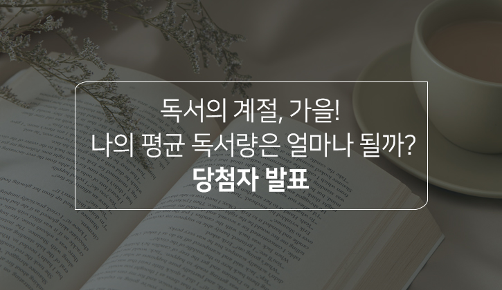 <독서의 계절, 가을! 나의 평균 독서량은 얼마나 될까?> 설문 이벤트가 지난 9월 20일부터 10월 11일까지 약 3주간 진행되었습니다. 가을은 책과 함께하는 시간이 더욱 특별해지는 계절이죠. 특히 독서는 일상 속에서 새로운 영감을 불어넣고, 가을의 깊이를 더해주는 멋진 취미 중 하나인데요. 단풍이 물드는 계절 속, 여러분께서 나누어 주신 독서에 대한 경험 덕분에 가을맞이 독서 설문 이벤트가 풍성하게 마무리될 수 있었습니다.