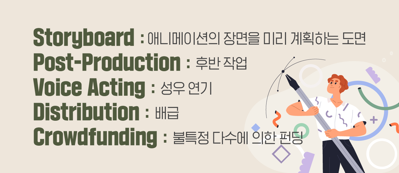 새하얀 첫눈이 내려 겨울이 성큼 다가왔음을 실감하게 되었는데요! 추운 겨울이 되면 따뜻한 담요를 덮고, 마음마저 포근해지는 애니메이션 한 편을 즐기고 싶곤 하죠. 오늘 <토익스토리>에서는 등장 캐릭터부터 제작 기술까지, 애니메이션과 관련된 영어 표현을 소개해 드리고자 합니다. 눈 오는 겨울날, <토익스토리>와 함께 애니메이션의 매력에 흠뻑 빠져보는 건 어떨까요? :)