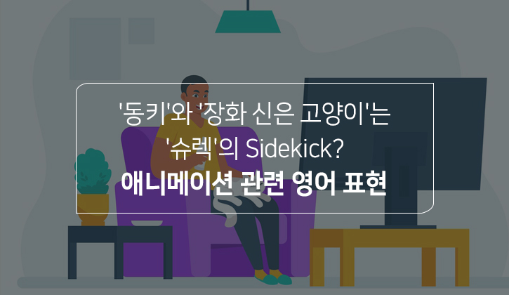 애니메이션의 매력은 흥미로운 캐릭터와 스토리에 있습니다. 스토리의 중심을 이끄는 주인공은 ‘Protagonist’라고 하며, 주인공 곁에서 든든한 도움을 주는 조력자는 ‘Sidekick(조수, 보조)’으로 표현합니다. <배트맨>의 ‘로빈’ , <스폰지밥>의 ‘뚱이’ , <슈렉>의 ‘동키’ 와 ‘장화 신은 고양이’ 캐릭터가 ‘Sidekick’에 해당하죠.