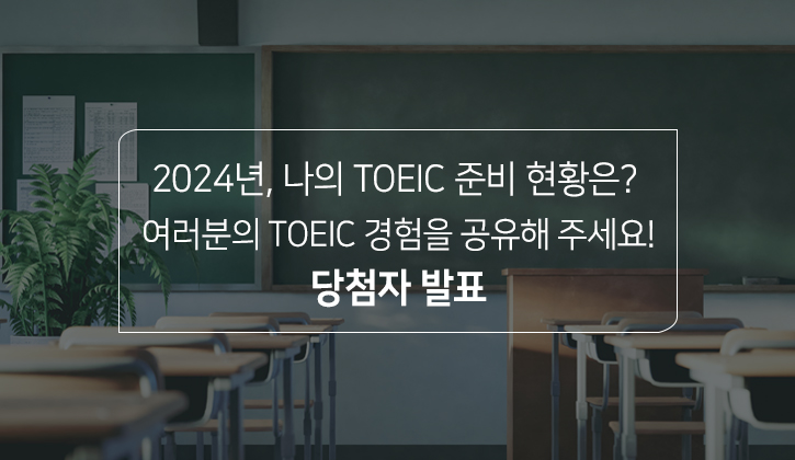 | [설문 이벤트] 2024년, 여러분의 TOEIC 경험을 공유해 주세요! (0) | 2024.11.15 |