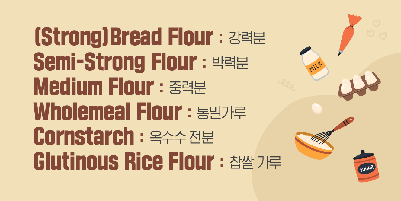 “강력분, 박력분, 중력분은 각각 영어로 어떻게 표현할까?"