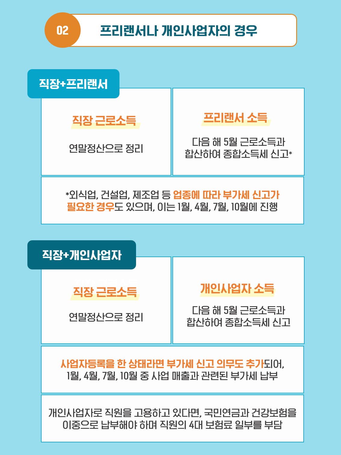 Q2. 알바가 아닌 프리랜서, 개인 사업자로 투잡을 하는 경우 세금 신고는 어떻게 하나요?
