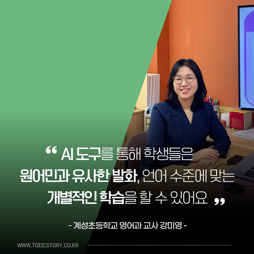 지금까지 계성초등학교 강미영 선생님의 인터뷰를 전해드렸습니다. 2008년부터 교내 영어 슈퍼바이저로 근무 중이신 만큼, 초등 영어 교육에 관해 깊은 이야기를 들을 수 있었는데요. 특히 '2024 YBM English Speech Contest'가 예선 심사에서 'AI 기술'을 활용한 것에 대해 다양한 장점을 말씀 주신 점이 기억에 남습니다. 빠르게 발전되어 가고 있는 기술 속에서 AI 도구를 활용한 미래의 영어 교육이 기대됩니다.
