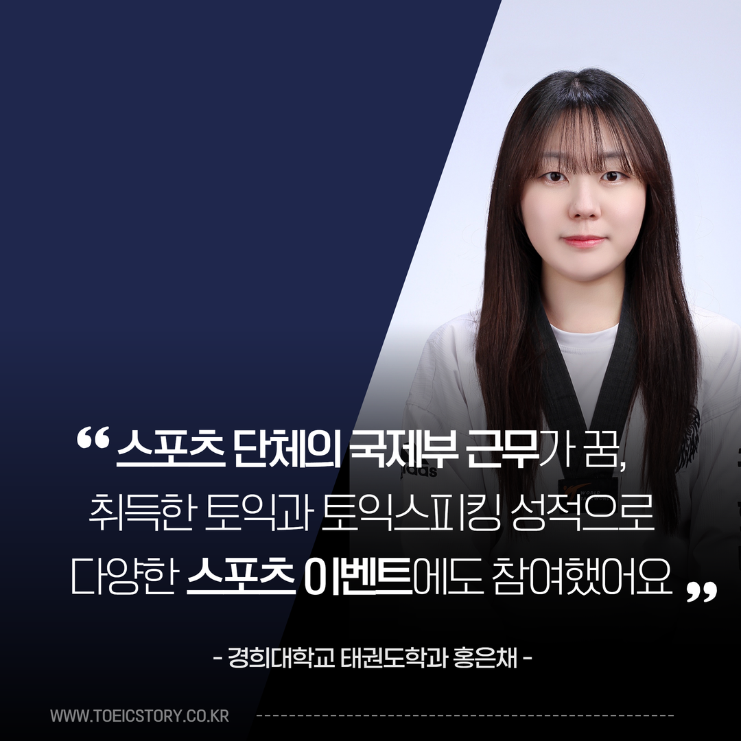 여러 번의 시행착오와 방황이 있었지만 그 끝에 태권도와 스포츠라는 자신의 길을 발견했죠. 그 후 영어와 함께 꿈을 향해 질주하고 계신데요. 미리 취득해 둔 토익, 토익스피킹 성적을 통해 다양한 스포츠 이벤트에서 두각을 나타내셨다고 합니다. <토익스토리>가 그 이야기를 전해드립니다!