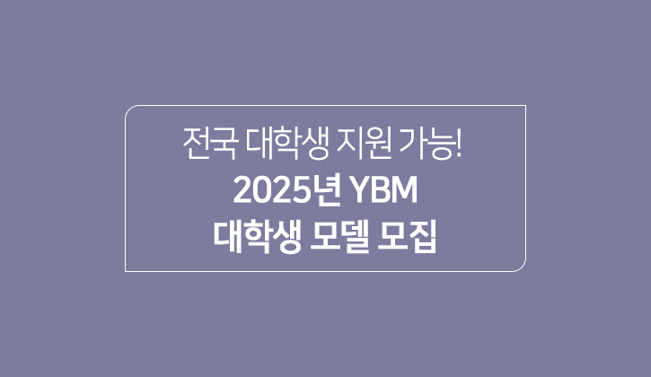 2025년, YBM이 새로운 대학생 모델을 찾고 있습니다! 미소가 아름다운 대학생이라면 누구나 지원할 수 있습니다. 지원 방법은 간단합니다. 간단한 자기소개서와 함께 본인의 매력이 담긴 사진들을 메일(model@ybm.co.kr)로 보내주세요. :)